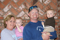 Here are some of the cute moments we've caught on film the last month. We had to put plexiglass on our baby gates because Luci figured out how to climb up them. So Dan was putting on the plastic and Luci and Eli were helping him. They would touch the drill and hand him zip ties. It was pretty cute. Luci somehow cut her finger the other day (that's her in the blue jammies-she had to borrow from Eli one night!). She got her first bandaid (unfortunately mommy wasn't prepared with cute cartoon ones) and spent a lot of time holding out her hand looking at it, almost like she just got a new ring. She amazingly left it on and didn't try and take it off. We got them a playhut for inside and Eli likes to crawl in it. He thought it was pretty funny. He'll get inside it and push it around the house. And yes, that's him with a bucket on his head. We have a couple of those gallon ice cream buckets that we keep blocks in and they love to put them on their heads and talk (it echoes) and now they've actually started putting them on their heads and walking around. It's hilarious. They also like to have a burpie or their bears over their faces and walk. And Dan left Thursday for a week and he was packing all his gear. The kids decided to help him with that too! Dan put some of his gear on them which they just thought was the greatest thing ever. Those pictures are posted just below this one. So that's just a few of the latest antics that we've caught. They are so funny. They just got some new toys and I've already been snapping away. So keep checking, I'm sure there is more to come!
